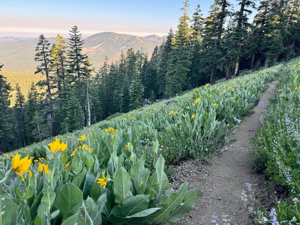 Environment and Weather: The trail traverses dense forests of pines and firs, as well as high mountain ridges and valleys. While temperatures were generally moderate, the area was impacted by several wildfires during this time, leading to smoke-filled skies, detours and occasional road walks. The landscape alternated between lush forests, alpine lakes and dry exposed ridges. The heat was a constant challenge, especially in the lower sections and the terrain was often exposed, requiring careful pacing and hydration management.